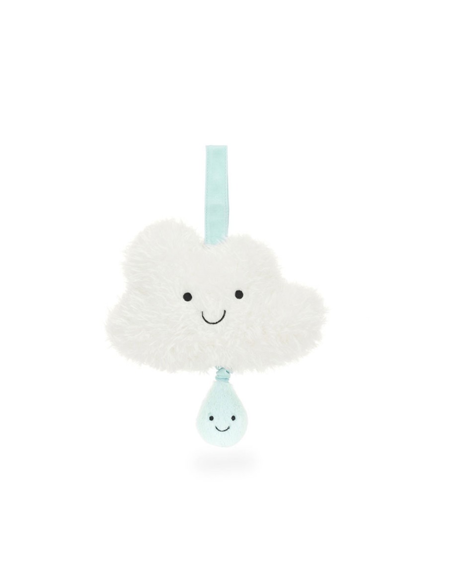 Fasten to crib, cot or pram with the hook and loop fasteners, then pull gently on the radiant blue raindrop: cheerful Stratto cloud will serenade baby with an original Jellycat lullaby.