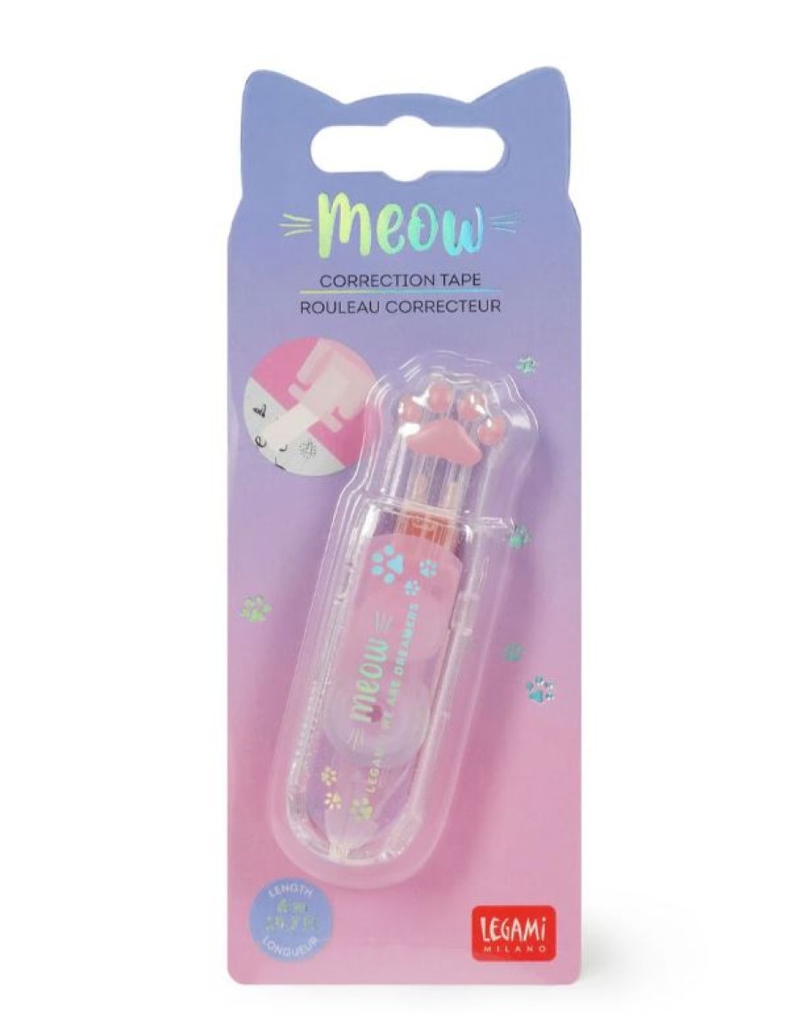Turn mistakes into purrfect results with the Legami Meow Correction Tape. Inside the clear paw-shaped container are six meters of quality correction tape, providing excellent coverage that can be written on immediately.