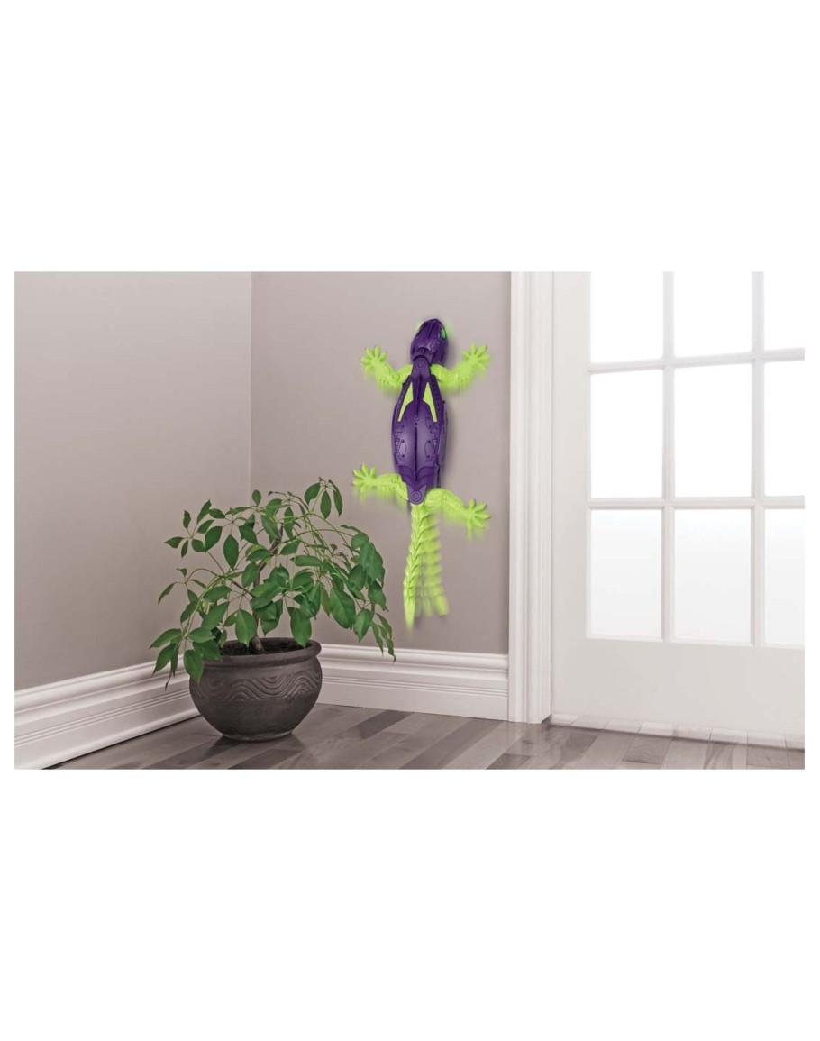 Dankzij de gepatenteerde Wall Climber-technologie raast de op afstand bestuurbare gekko niet alleen met indrukwekkende snelheid over de vloer, maar beweegt hij zich ook veilig op volle snelheid langs muren of plafonds.