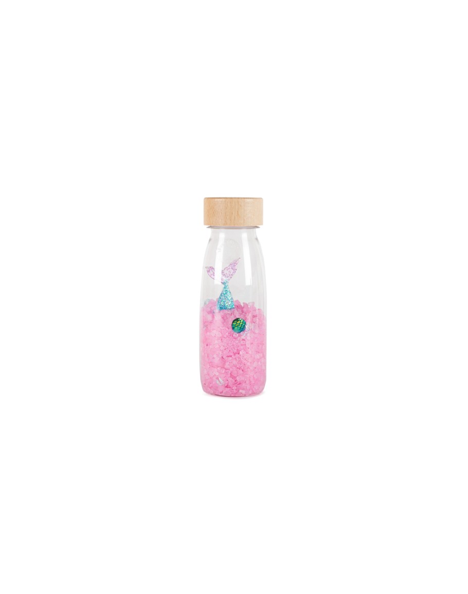 Kijk, beweeg en luister! Stimuleer het gehoor. En leer onderscheid te maken tussen verschillende geluiden. Stimuleer het zicht. Stimuleer de tastzin. Geluidsflesjes, een wereld vol geluid en kleur binnen handbereik. Spelideeën: Observeer de elementen in de flesjes. Schud en raad welk geluid bij welk element hoort. Stapel de flesjes op elkaar. Rol de flesjes over de grond. Vanaf 3 maanden.
