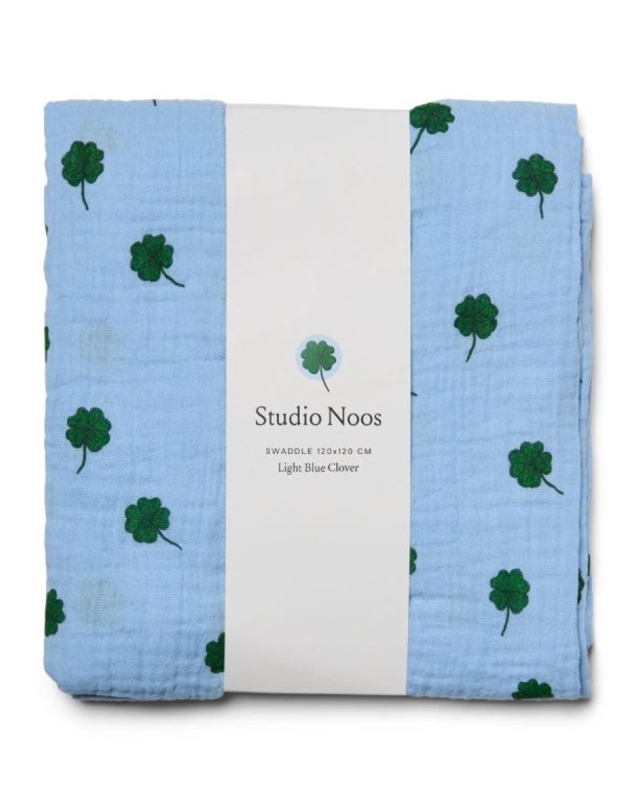 STUDIO NOOS - Hydrofiele Doek Met Klavertjes – Large - Lichtblauw
