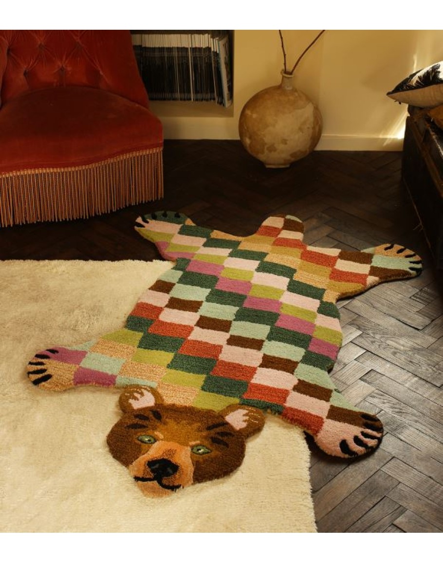 Het Archie Geruite Beer Vloerkleed Klein maakt deel uit van onze eigen Tapis Amis collectie, een reeks vrolijke kleden uit het dierenrijk die altijd weer een glimlach op je gezicht toveren.
