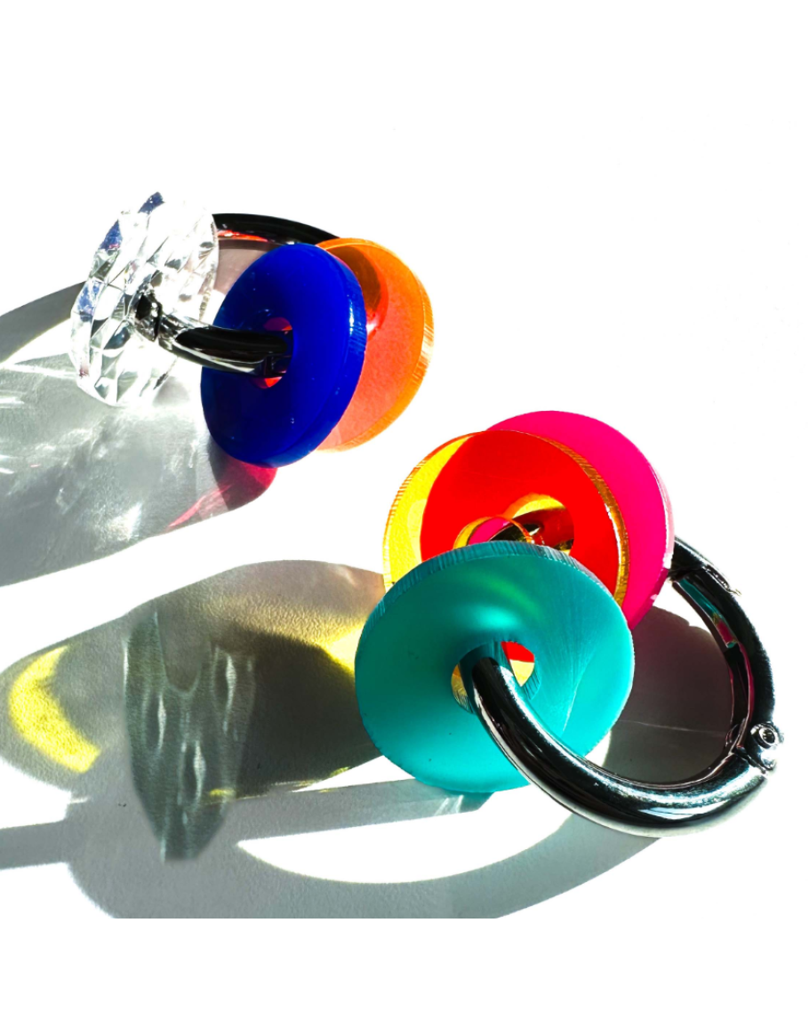 Each “Loop Keychain” comes with a set of 3 coloured acrylic loops, all laser-cut from collected plastic leftovers. Attach one or more loops to the luxurious key ring and carry your unique, environmentally conscious accessory with you every day.