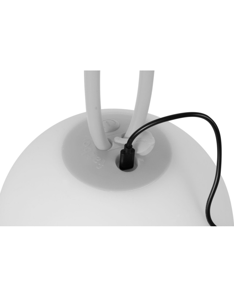 De waterafstotende led-bollamp voor binnen en buiten. Eenvoudig op te hangen aan de rubberen lus. Laad je bolvormige lamp op via de usb-aansluiting en geniet tot 24 uur lang van instant sfeer in drie standen.