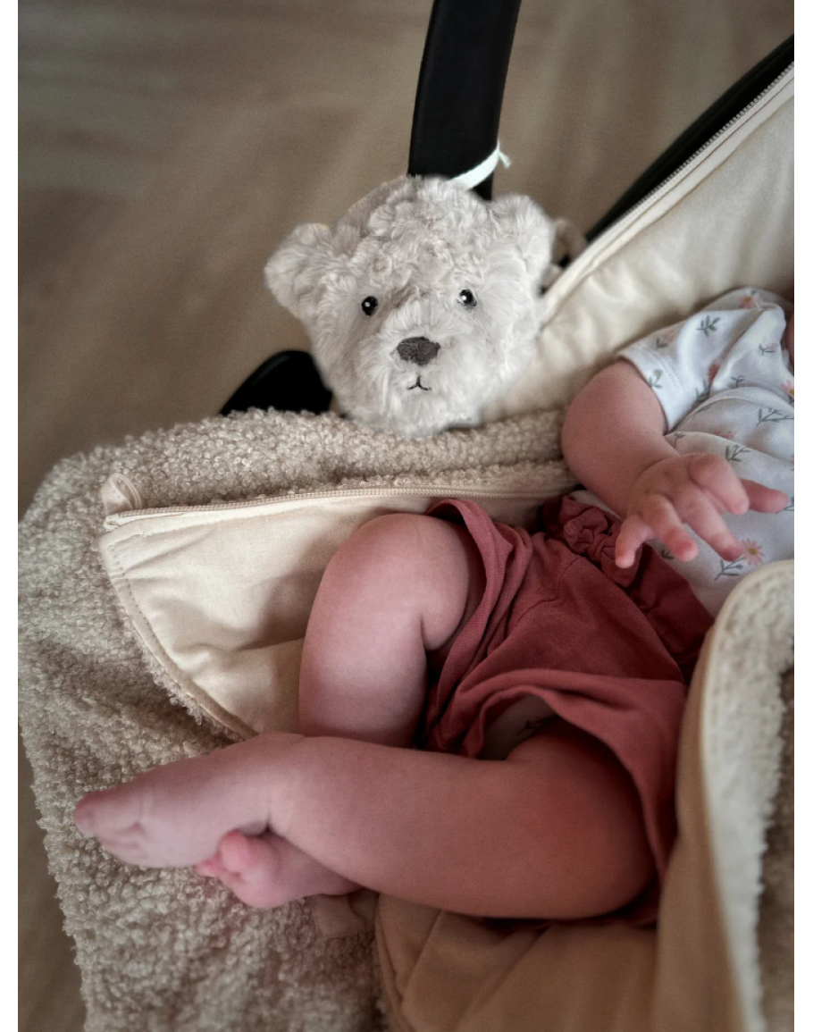 De comforter on the go is een kleinere versie van onze hartslagknuffel. Een knuffel met muziekdoosje die er voor zorgt dat je kindje zich veilig en kalm voelt onderweg. Je kunt het knuffeltje makkelijk bevestigen aan je Maxi Cosi of kinderwagen met het strikje. Het muziekdoosje komt met 2 geluiden: Hartslag en witte ruis. Met een knop kun je het muziekdoosje aanzetten, het volume aanpassen en het geluid kiezen. Omdat de knop extra groot is, is hij makkelijk te bedienen, zelfs als hij in de knuffel zit.