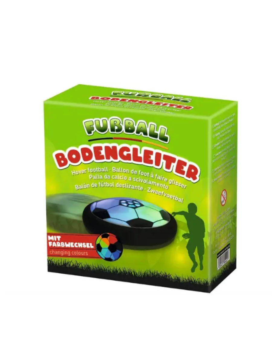 Binnen voetballen zonder iets om te stoten? Dat kan met deze glijdende voetbal met licht! Deze speciale voetbal zweeft over gladde vloeren dankzij een luchtkussen aan de onderkant. Hierdoor glijdt de bal soepel over de vloer en kan er veilig binnenshuis gespeeld worden.