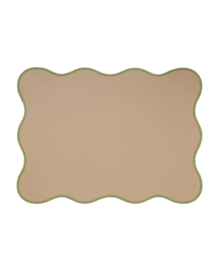Placemat met golvende randen en contrasterende stiksels voor een elegante afwerking. Onderhoudsvriendelijk.