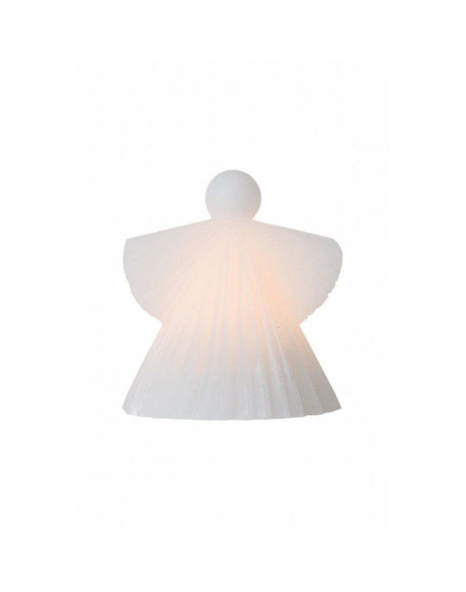 Deze mooie engel is gemaakt van echte wax en heeft een LED lichtje; Afmeting: Ø 11,5 cm en hoog 12,5 cm; ze werken op 2 AA batterijen (niet inclusief)