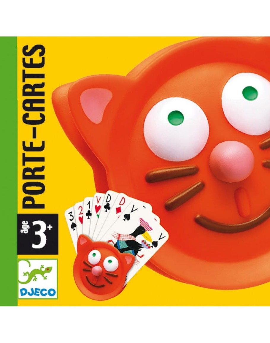 Dankzij deze grappige kaarthouder van het Franse merk Djeco kunnen ook peuters gezellig een potje kwartet of ander kaartspelletje meespelen.