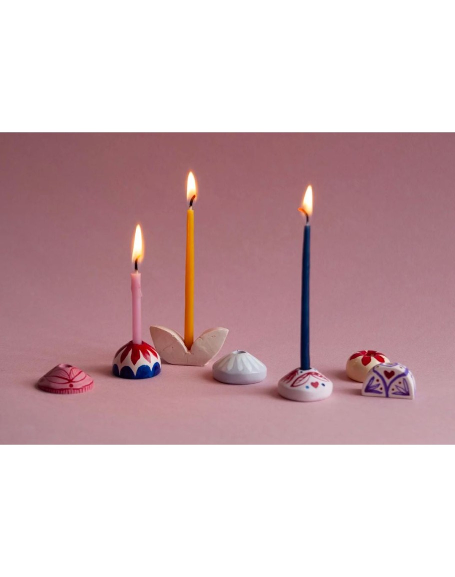 Disclaimer: de kaarsenhoudertjes worden met de hand gemaakt, en zijn dus allemaal uniek. Welk houdertje er in het pakje zit is een verrassing.