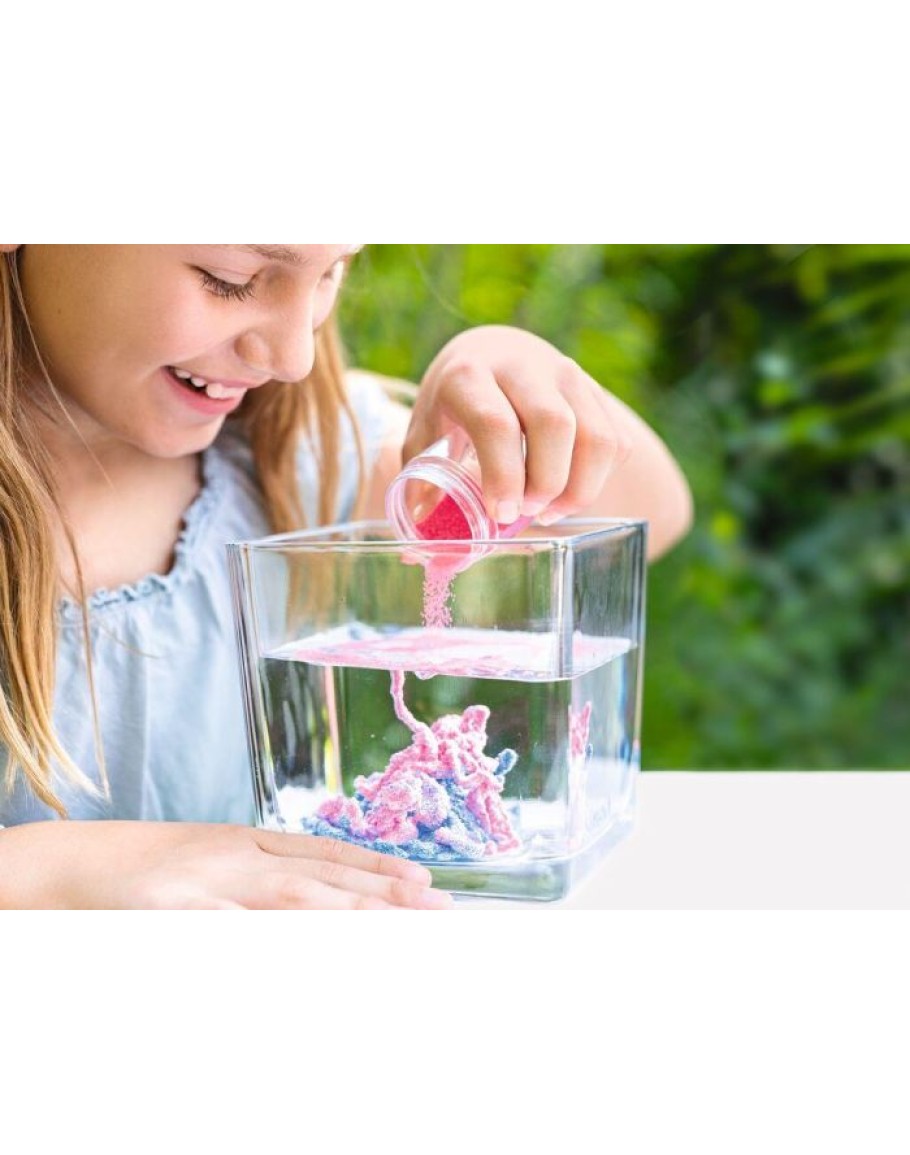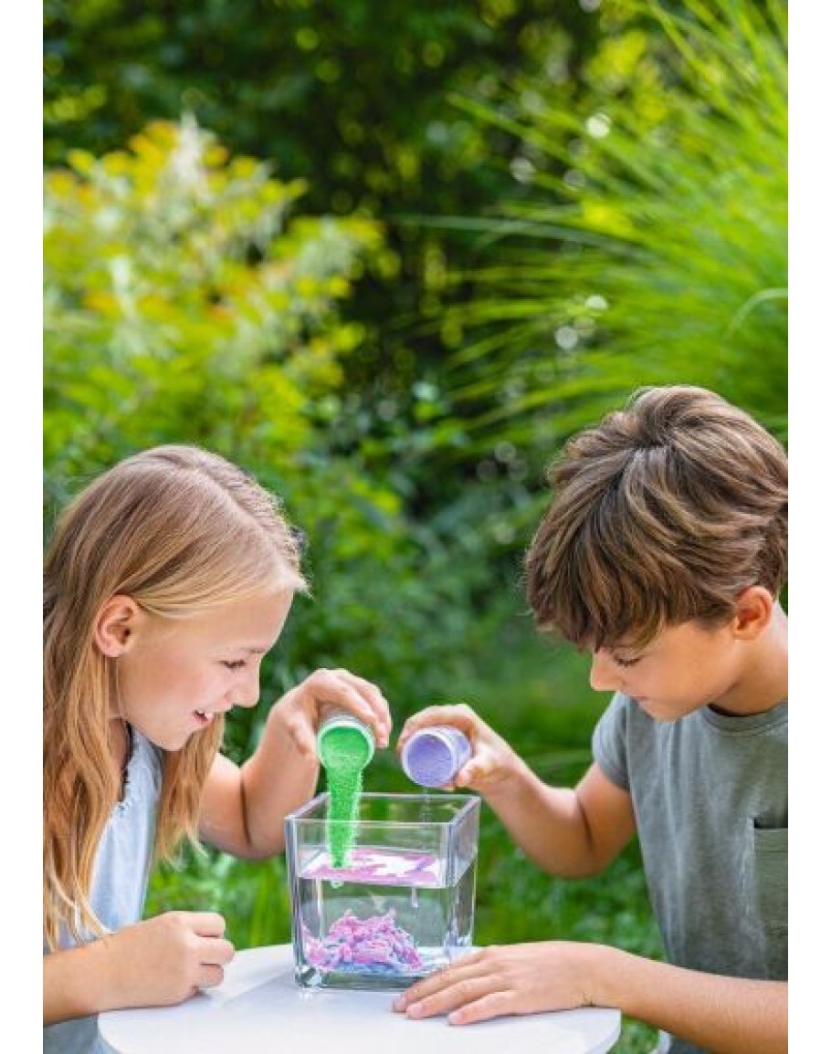 Hoe leuk! Met magisch zand, ook wel Hydrofoob zand genoemd, kun je de meest futuristische vormen maken in het water. Haal je het zand er weer uit dan is het gelijk droog. Als je klaar bent giet je het water weg door een hele fijne zeef en vang je het zand in de zeef op. Of giet het meeste water weg en het laatste restje water met het zand op een stuk keukenpapier of theedoek. Als het water door de doek is opgenomen kun je het zand weer hergebruiken. Je kunt de kleuren onder water mengen maar dan blijven de kleuren na het weggieten uiteraard wel gemengd. In het boekje vind je meer infromaite over dit hydrofoob zand. Verkrijgbaar in 4 vrolijke kleuren. Afmeting potje: 5 cm hoog en 5 cm doorsneden, inhoud ongeveer 50 gram. De geweldige serie PhänoMINT bevat kleine experimenten op het gebied van techniek, wiskunde, natuurkunde en informatica die eenvoudig te doen zijn maar een groots resultaat hebben. De experimenten zijn geschikt voor kinderen vanaf 6 jaar. Een boekje met uitgebreide uitleg in 5 talen is bijgesloten.