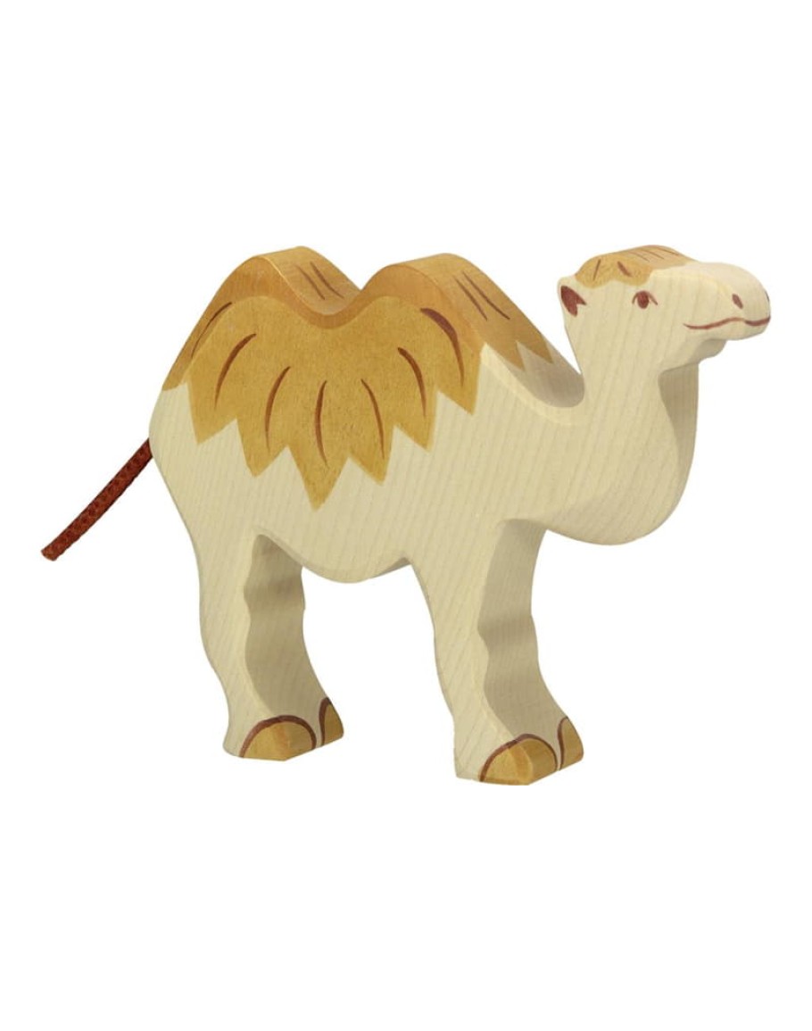 Prachtige kameel van Holztiger. Deze dieren worden met de hand gemaakt van duurzaam esdoornhout en daarna geschilderd en afgelakt met een verf op waterbasis. Met deze mooie houten dieren kunnen kinderen hun fantasie de vrije loop laten. Ze staan ook nog eens heel mooi op een kast of plank in de kinderkamer. Maat: 18 x 3 x 14 cm.